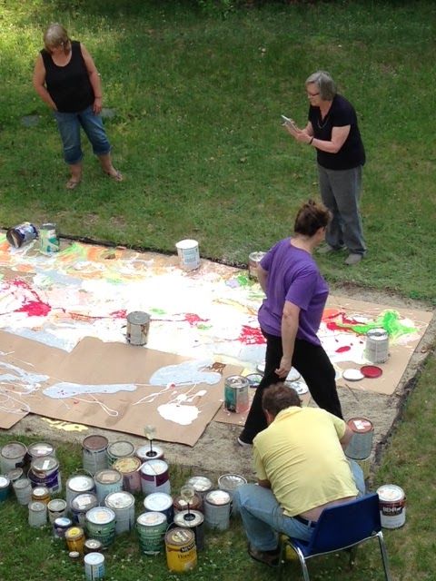 We've been cleaning out my mom's house for weeks. This past weekend, my sister, Jen, and her husband came up to help clear out the barn. There were tons of paint cans that needed emptying, so Jen and Brian decided to dump them on sheets of cardboard on our old sandbox.