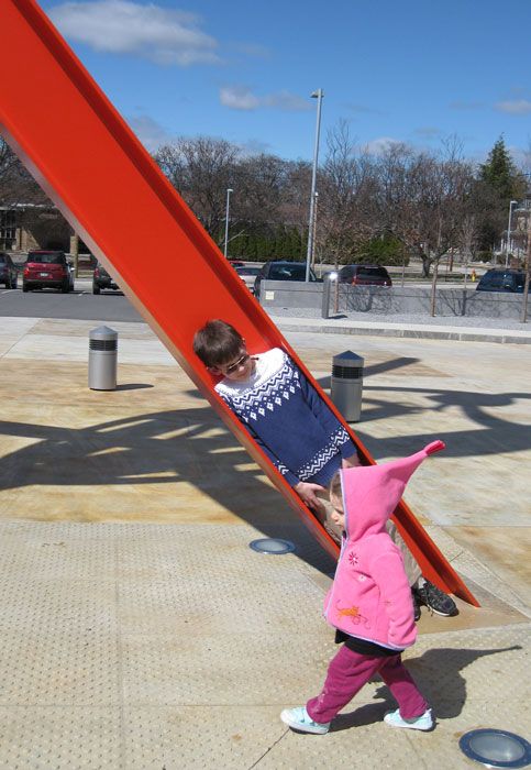 On the way out to the parking lot, we reminisced about visiting the museum a few years before with his little sister and the funny photo I had taken of them. To humor his mom, Alex crammed himself into the huge, metal sculpture. (He had to turn himself sideways!)