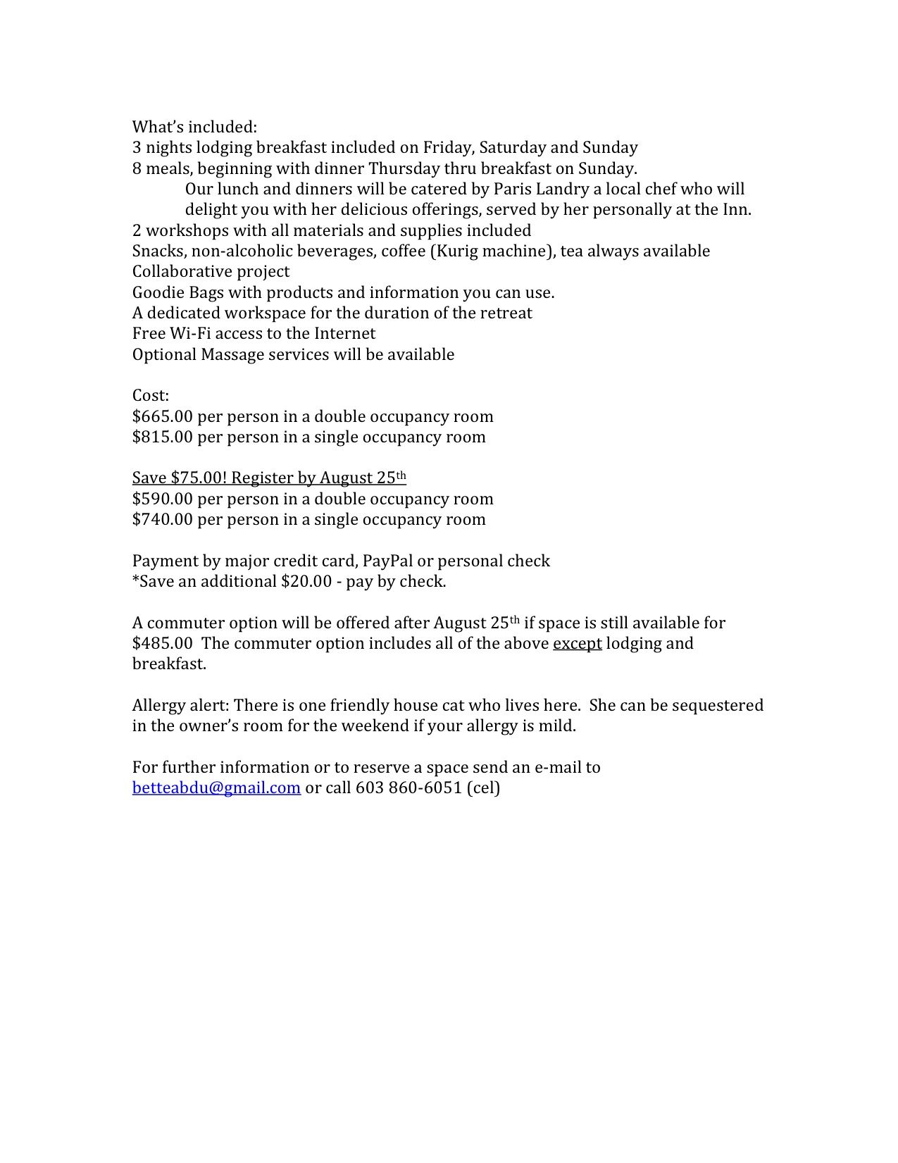 If you are NOT a Certified Zentangle Teacher this is NOT the retreat for you - come to my retreat in Maine, in November instead. Tee Hee!