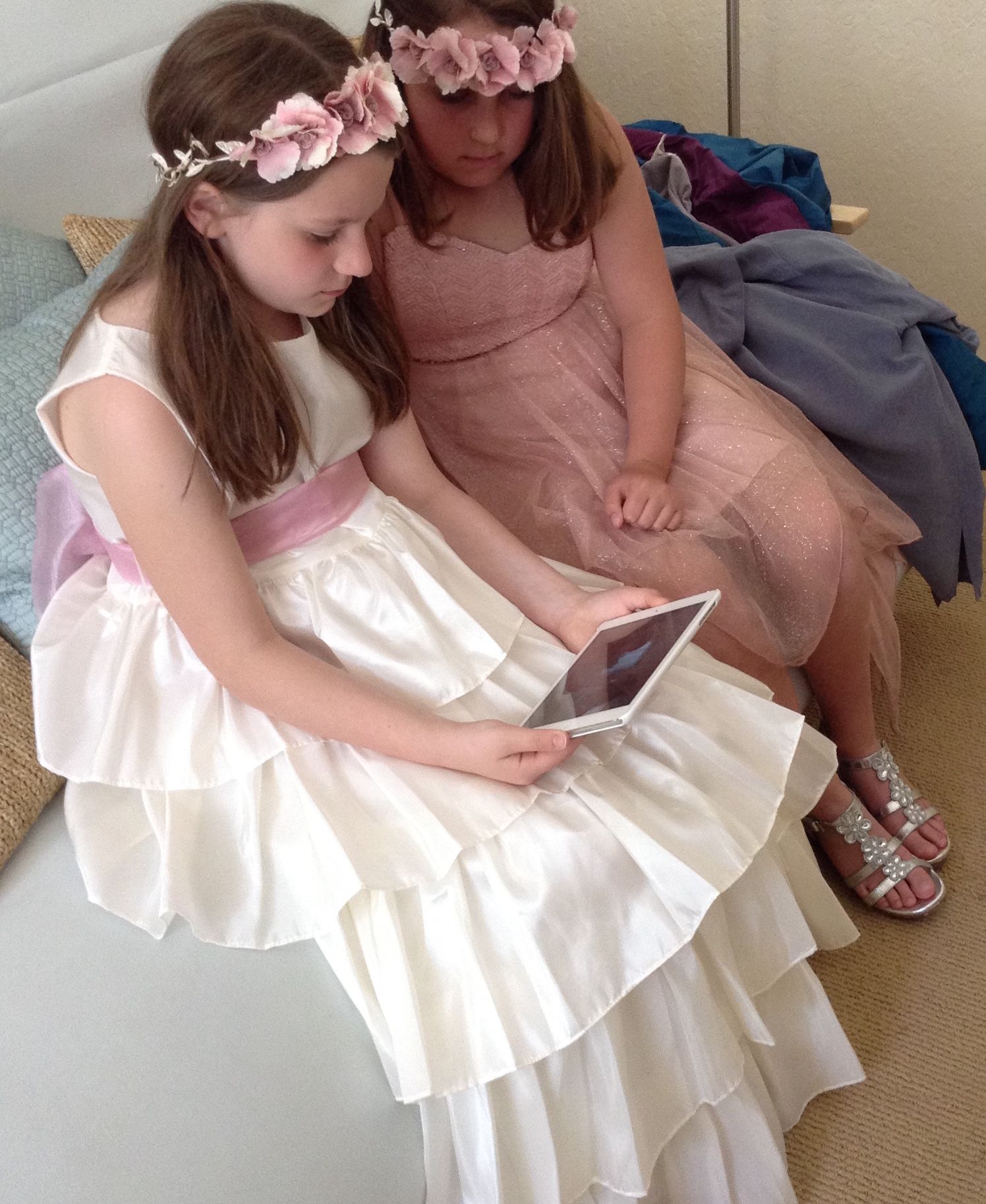 Lilah flew out there to be a flower girl. And met her new BFF - who also loves iPads and Minecraft!