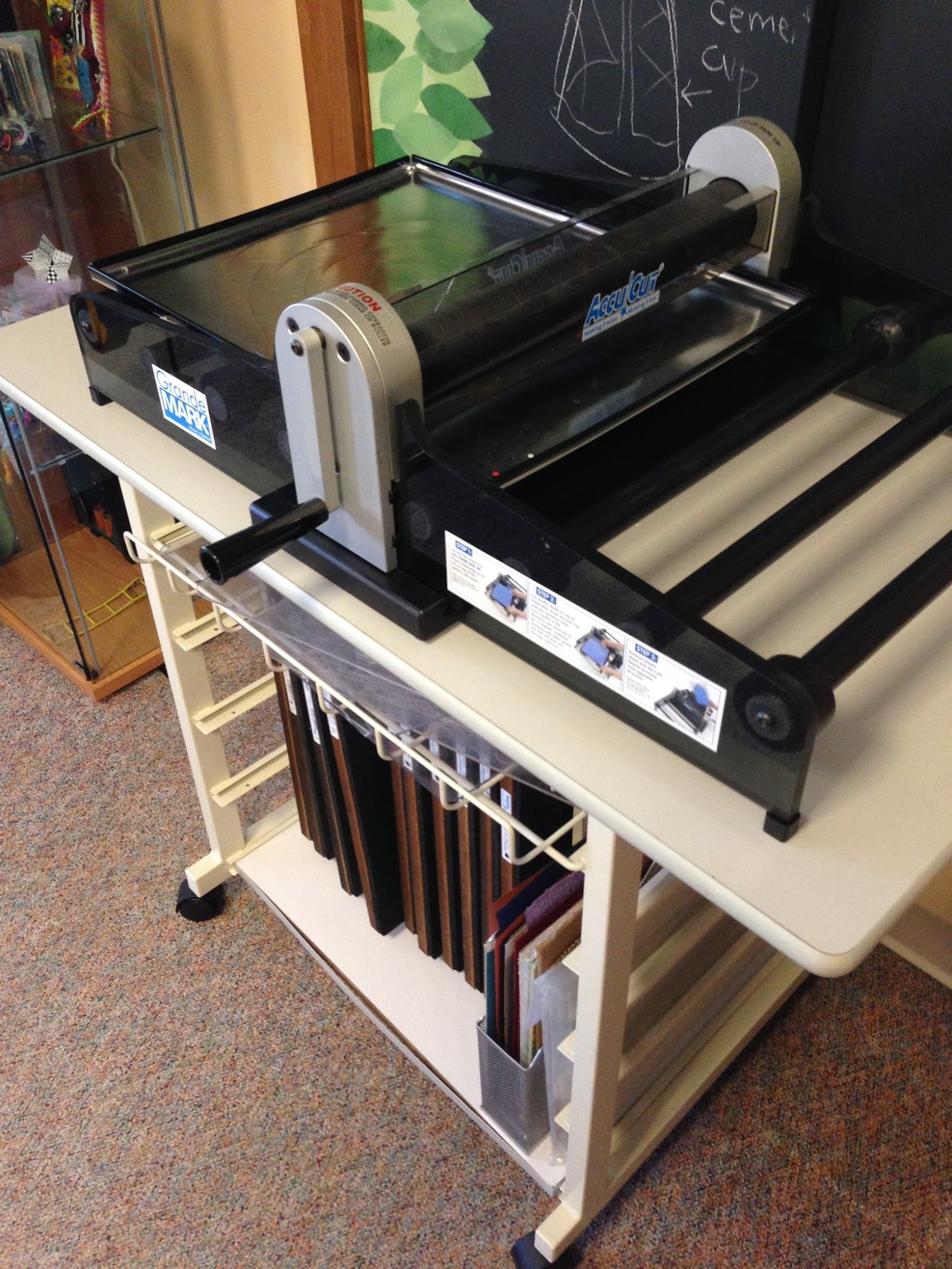 Starting this Saturday, we'll be having Studio Clear-out Sales! Every week there will be new things added to the mix as I empty the classroom, office, and storage room. There are a lot of new art supplies and books right now. I also have shopping bags, gift boxes and all that stuff. Displays - big and small. A kiln, mosaic supplies, wood objects to paint or tangle... A huge Accucut die cutter and a gazillion dies (it cuts paper, fabric, cardboard... even thin metal).