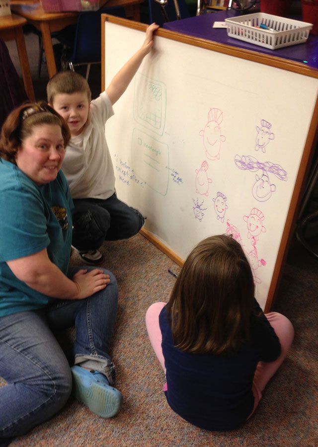 Since there is nothing like a deadline to motivate me to action, I decided to do an Open Studio on Dec. 8th when the whole town had a Holiday Shopping Tour. Even with the deadline, I was still floundering until Jacque showed up and actually started moving stuff. We resorted to the ages old tactic of "shove everything unnecessary into the other room and hide it with a curtain". Fabulous trick. Of course, everything is still in that room, but the studio looked great. Her son, Danny is in Kindergarten with my daughter so we brought them both back to the studio to "help"- which always seems to involve a lesson from Lilah on how to draw Lilah Beans....