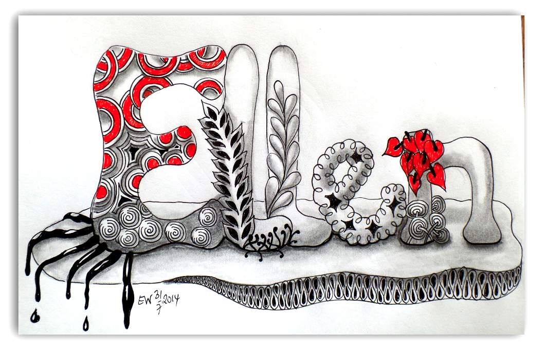 Create a Zentangle using your name or nickname as the string, and only traditional tangle patterns to fill it in.
