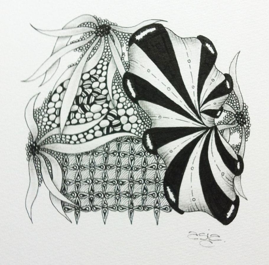 Tangles used: printemps, meer, purk, nzeppel, twing pepper, kathy's dilemma and echoism.
