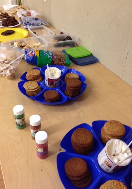 There were tons of yummy cakes and cookies, including some decorate your own cookies. My fireman had dropped off some homemade toffee... on his way to pick up my college kid in New York. (what a guy!)