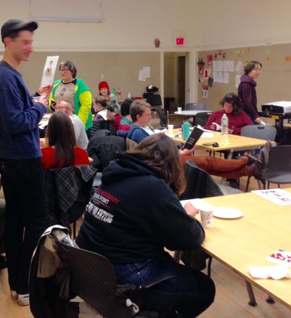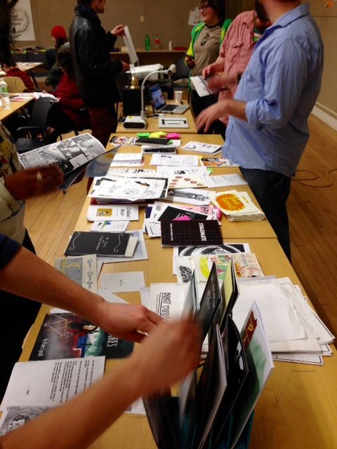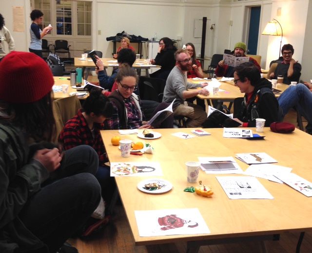 We loaded up on num-nums, then grabbed stacks of comics (everyone brought all the work they've done this semester, and past work too)...