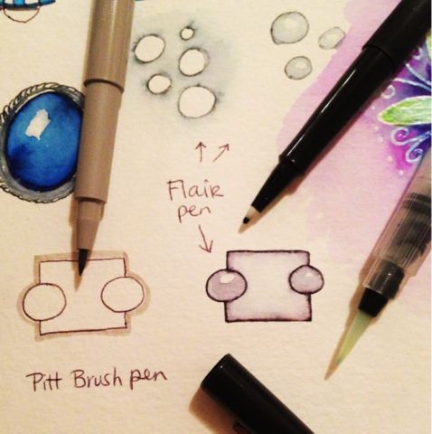 I was asked how I did the gray lines in my previous journal posts. I use a Pitt Brush, which is permanent, gray India ink. A Flair pen is also cool... The drawn lines can be blended using a water brush. There are interesting tones of blues and grays.