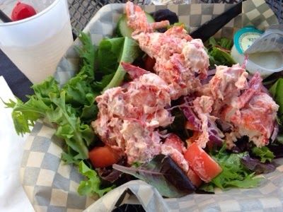 Birthday Dinner: huge... HUGE... Lobstah Salad, Clam Chowdah, and Skinny Piña Colada. Oh-yum.