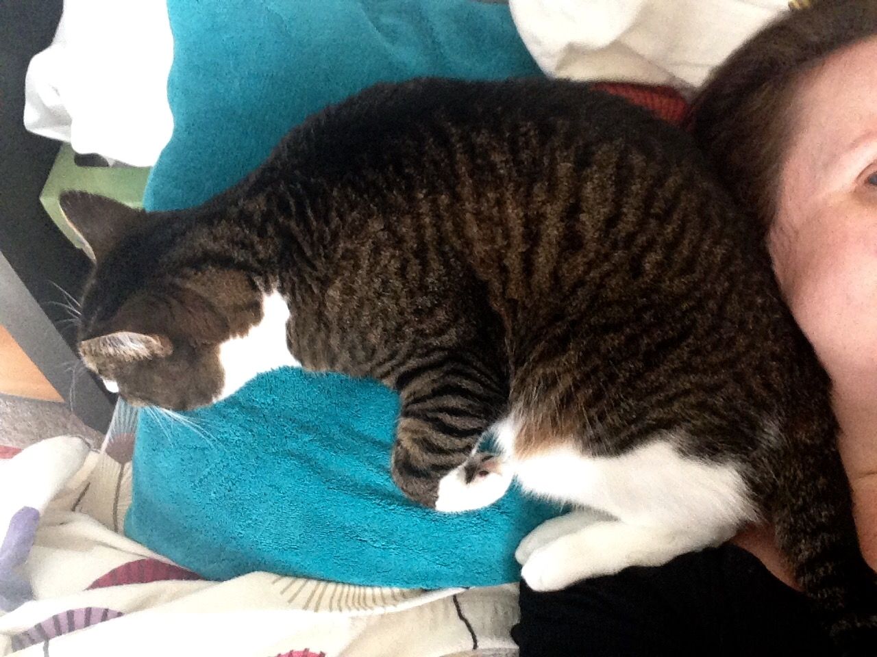 I highly recommend this warm-cat compress for anyone else who is suffering from strep. We both fell asleep.