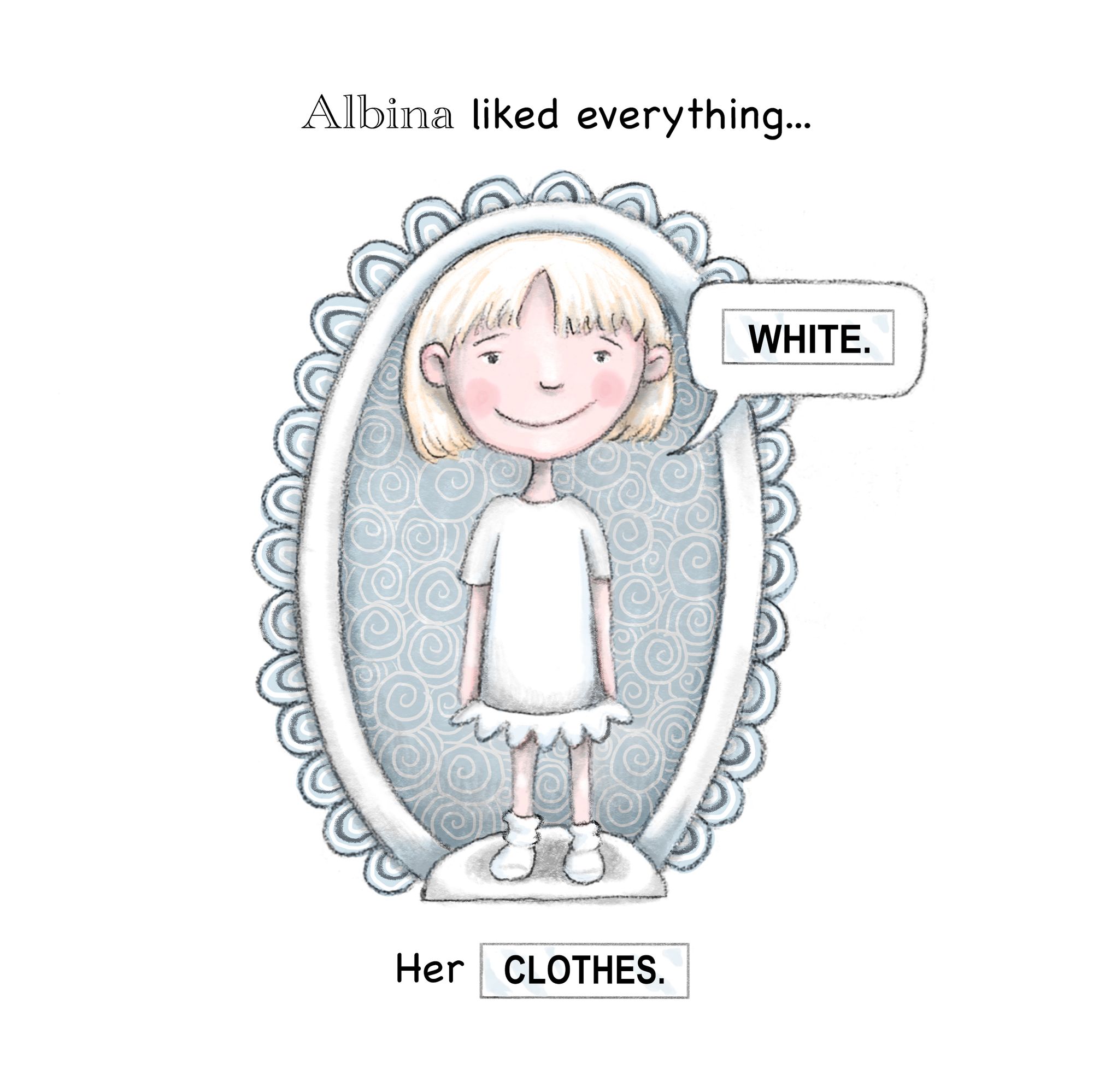 It’s a comic/picture book hybrid called BLUE ROO - An illustrated story about Albina, a girl who likes everything white.