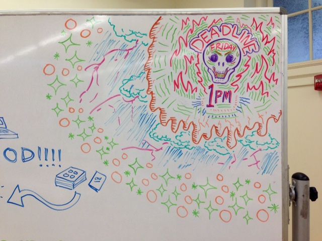 Others were in the lab photocopying. I had been up till 3am again, but I had all the art scanned, cleaned up, reduced in size and saved as Photoshop files. I could barely walk in a straight line and my eyelids felt like lead.