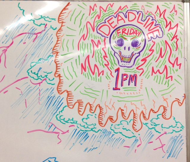 Oh? Deadline is counting? Eeeek!! That's quite a turbulent storm going on around him...
