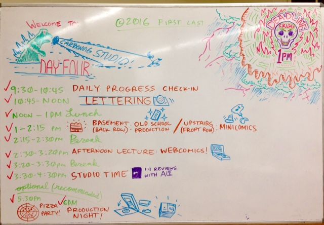 Lots more good workshops today - Lettering (I adore lettering!), Webcomics, and how to photocopy, reduce and assemble the mini-comics the old-school way (without computers).