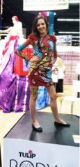 I had a lot of fun chatting with Stacey from James Button and Trim about designing custom buttons. (see the picture with the cute sunglasses). And Joanne Fink- who did the Zenspiratons book, is a licensing coach and I HAVE to go back to talk to her again tomorrow! I met a lot of designers who do the demos and create samples and projects for different companies. I got a really cool wheeled cart from Tutto luggage. In purple! And, and, and...!
