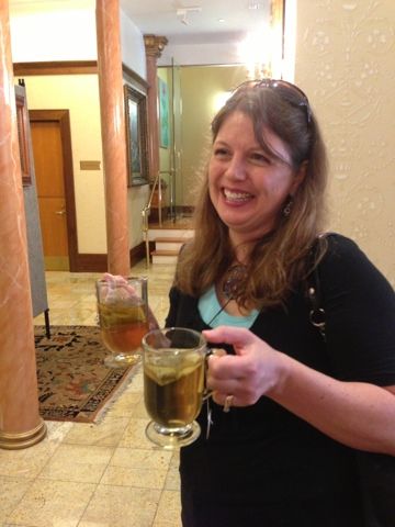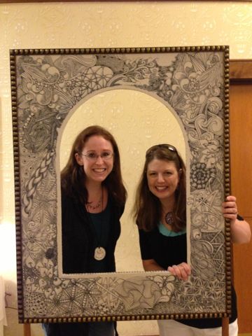 Today, Tuesday, we CZTs who were not technically IN seminar, but were lurking around because we had family members in training - gathered together in the lobby to gossip and laugh and pretend to shoot a video about my new Tangle Cards. I think I have learned more out in the lobby than inside the seminar (LOL) - there are so many fascinating people here. And from all over the world!! I was so excited to meet ladies from Ecaudor, Latvia/Belgium, Sweden, South Africa and Alabama... and there are actually quite a few men here too. One is named "Dude". Yes. Dude. And my son and Caroline Broady are the youngest CZTs yet. Alex is 15 and Caroline is 14. Woo-hoo! A record! They will both be amazing CZTs. I was so proud of Alex - despite being groggy from cold medicine - he has been doing his best to be friendly and open-minded and he's been talking with people. I knew this was all worth it when, at dinner last night, he was asked what he might do with Zentangle, and he replied - "I think I'd like to teach it to my school. The entire school." And then went on to wonder how he could get enough supplies to give to all the students. Caroline is also pondering how to create a club at her school. Very cool kids!
