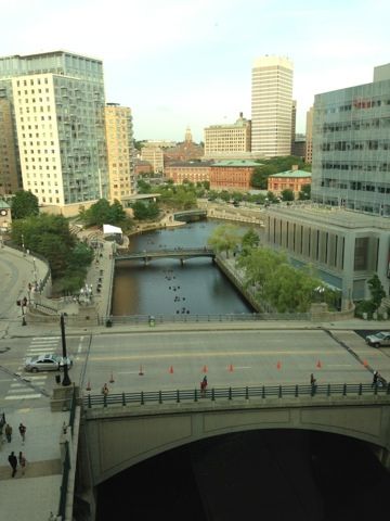 I always feel really strange when I am in Providence since it doesn't look much as it did when I went to school here. There was no river, and the downtown area was so dangerous, it was off limits. Now there are little art boutiques, restaurants, hotels, a beautiful park and skateboard park, and then there are the gondolas and river walks and a ginormous mall with an iMax theater built over the river. Oh yes, there's a river. We used to joke that Providence was the world's widest bridge. All this construction was being done while I was in school. We had a space of about three feet outside the Illustration building at RISD between us and the four lane highway. Now, there is an enormous brick... I don't even know the word?.... giant patio-thingy that goes for miles, and overlooks the canal and bridges. Jealous, me? Why would you say that? ;-)