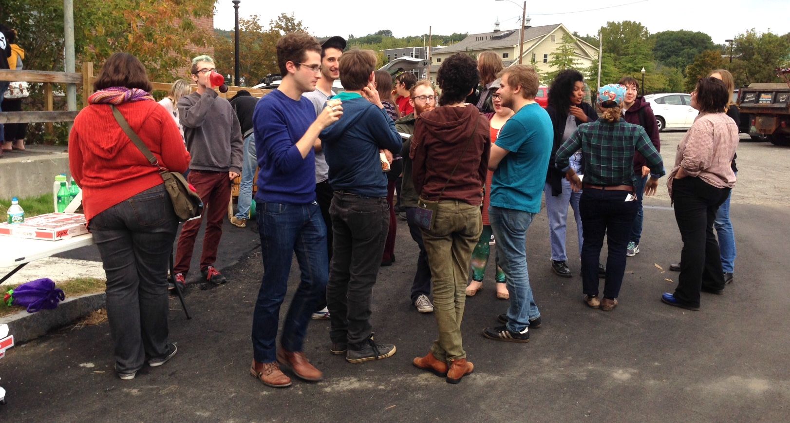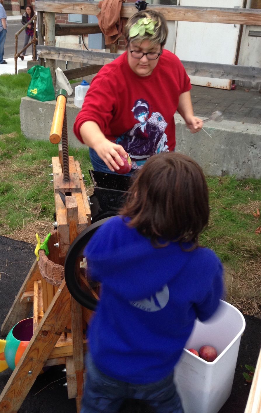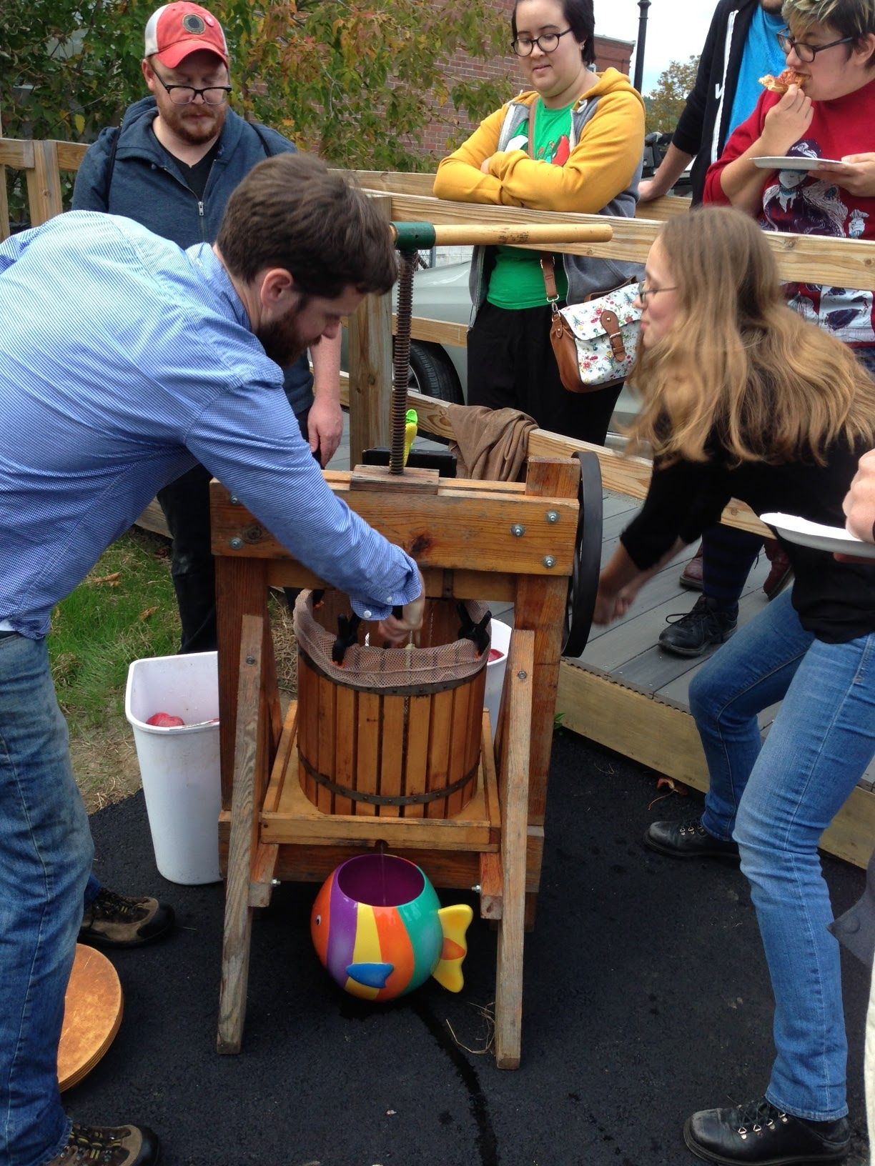 After class this evening all the students went out back to the parking lot for a pizza and apple cider pressing party.