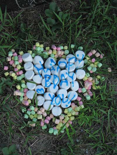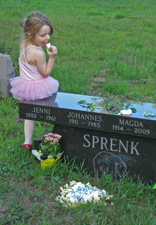 Since she has a new stone, and it was her birthday, I coaxed my kids, my mom, and my mother-in-law out to the graveyard for a little picnic. My son and I had made a chocolate cake (Gramma loved chocolate) and we all ate until we were sugar crazed. Lilah took off running around the cemetery like a banshee and Ellie trailed after her. I had been disappointed that Gramma was buried in this new cemetery - no old interesting stones, no trees, just lots and lots of empty grass and an occasional altar with beer bottles or flowers... but now I realized this was the perfect spot. I didn't have to say"be careful, don't step on...." because it was mostly empty. So go ahead and run, burn that sugar rush! Meanwhile, Alex and I built a marshmallow "cake" into the shape of a heart and I wrote on it with frosting. The ants thought they had died and gone to heaven! Maybe Waterloo Cemetery is actually the Valhalla for ants? Well, it was yesterday. And after a week of steady, dreary rain, Gramma had somehow managed to conjure up an absolutely perfect sunny, cool day.