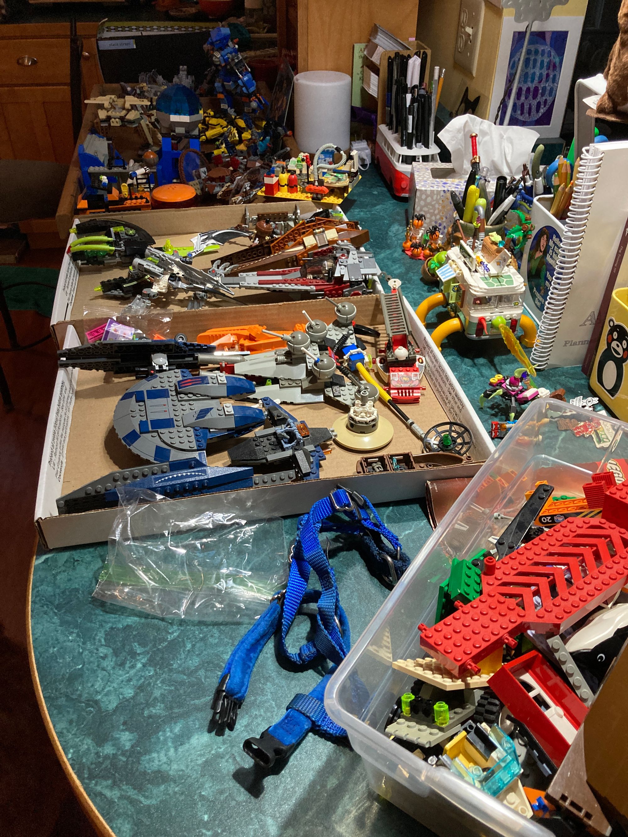 I have bins and trays spread over 4 rooms trying to identify "chunks" of built sets with the images on the instruction books and boxes (yes! I have the instructions nd boxes!) And up in my studio... I have more sets from the 70's and '80's (pirates, space, robin hood...) and the guest room has all the Star Wars, Adventure/Jack Stone, Fairies, Friends... I figured I'd start with Alex's Lego sets since I didn't have to agonize "should I sell these?" Although I am SOOOO tempted to keep some of the minifigures... especially the aliens.