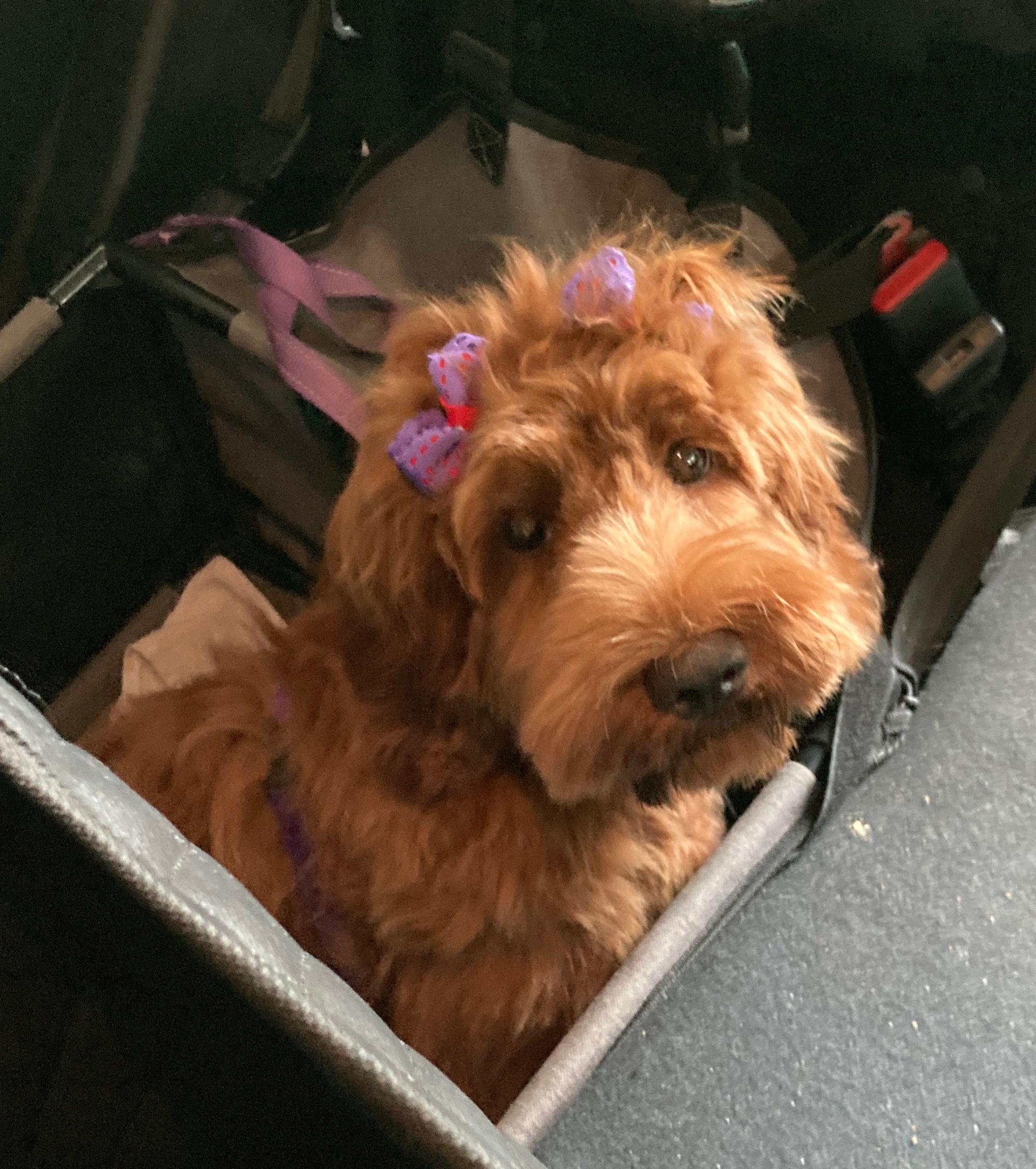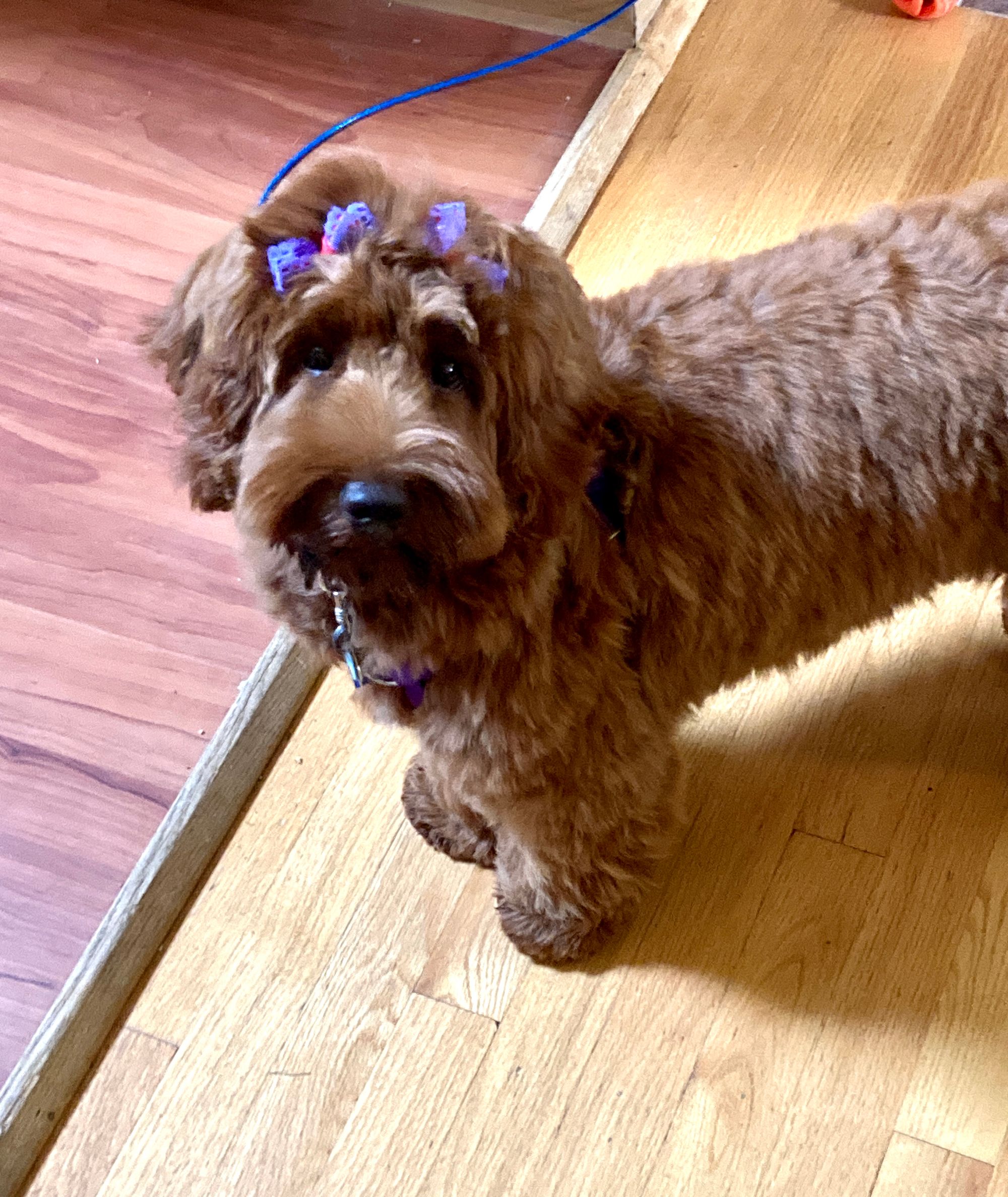 Grooming... Take 2.... If you saw my previous post, I wasn't thrilled by the poofed up "blow-out" without any real trim. Elsa Bear just had her first COMPLETE trim and groom! She's sooo clean and soft! And NOT over-poofed up. I'm sure she'll be back to Normal (dirty) as soon as she gets out to her big project - an impressive hole she is working on under the garden bench! It's a full-length hole which means she can immerse her whole body and roll in the cool dirt while flicking clumps of dirt and chubby earthworms out on Mommy's bare feet. (Hmm... my feet are pretty dirty ... I could use a spa day too). I don't think the bows will last long in her hair either - but so cute!!