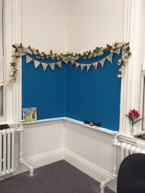 The old cork boards got pretty blue felt resurfacing.
