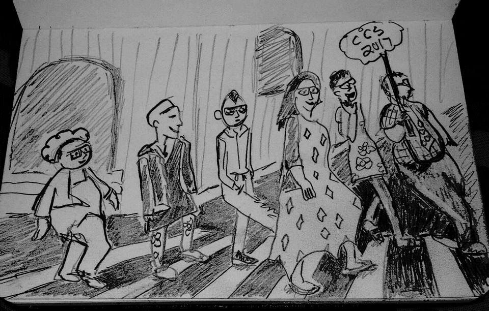 On the far left is LINIERS, our Fellow - he's a cartoonist from Argentina. His sweater has his own characters on it!!