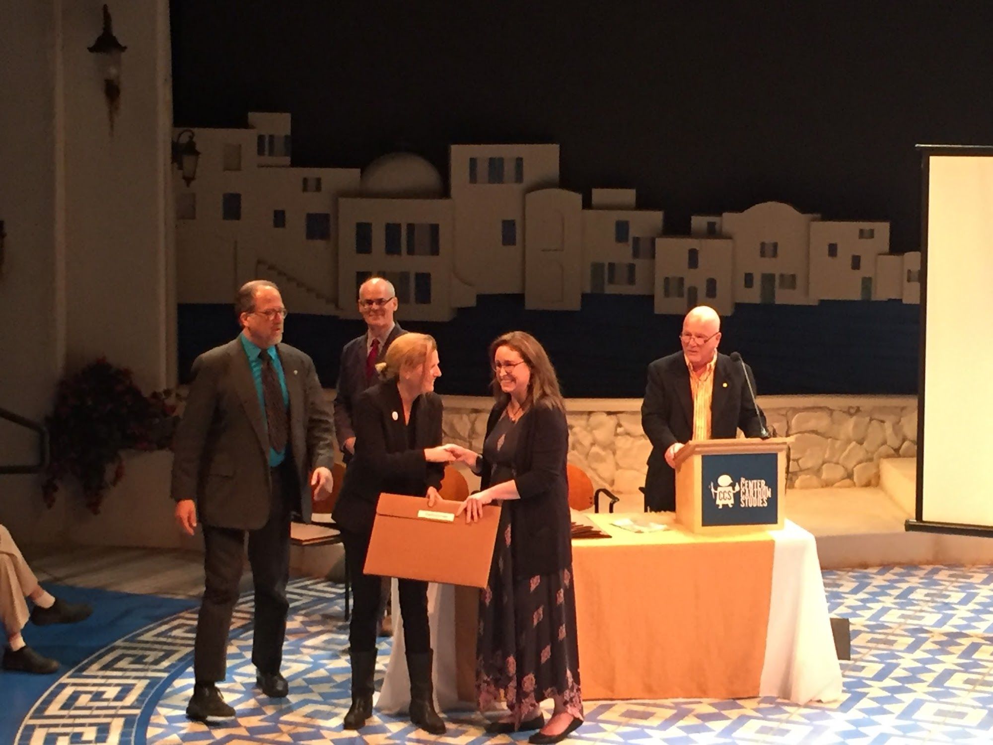 We had the set from "Mamma Mia" as our background! (Great musical, by the way, go see it!!)