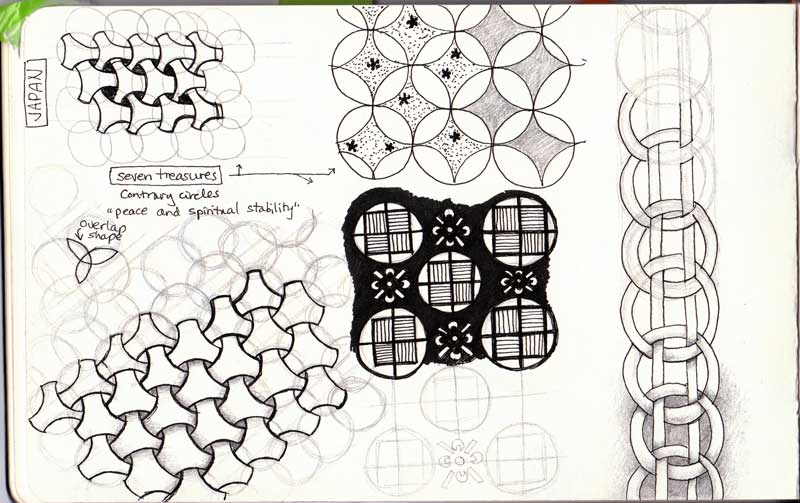 A few posts back I promised to post my sketchbook pages of Japanese kimono patterns that couldn't be tangled.