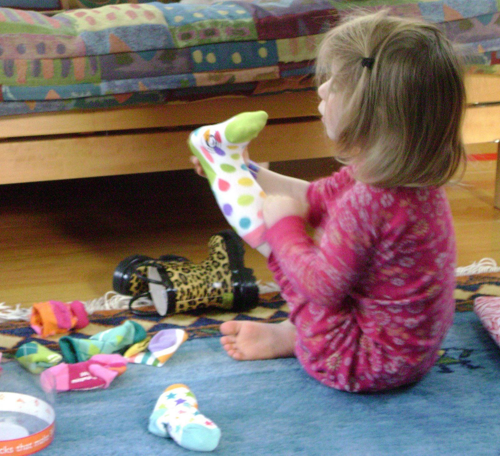 Isn't it weird what kids love as gifts? Yeh, the cardboard box and ribbons... how about a tub of mismatched socks? No, not your first guess? She tried them on (and off) for almost 45 minutes!