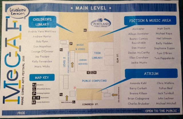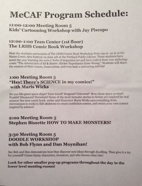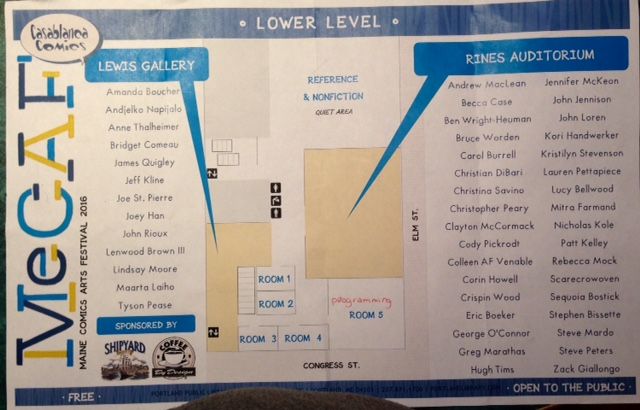 MeCAF was held at the Portland (ME) public library which is quite a place. It was FREE to get in and there were lots of adults and kids and many folks who just wandered in.