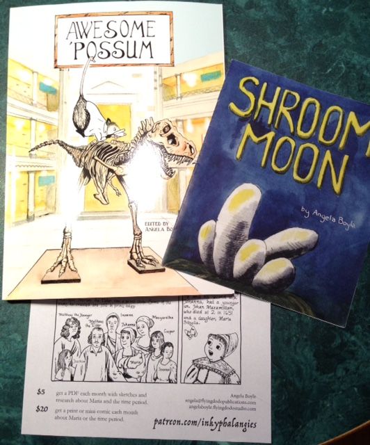 Awesome Possum was just funded on Kickstarter and Angela is doing a Patreon for her comic about Maria Sybilla Merian, a natural science illustrator.