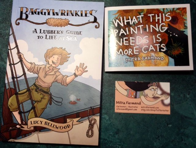Baggywrinkles by Lucy Bellwood (who has also taken classes at CCS) and What This Painting Needs Is More Cats by Mitra Farmand (a CCS alum). I adore Mitra's cartoons - they made me laugh so hard and I was so happy to learn that she was like me - an "old" student at CCS...