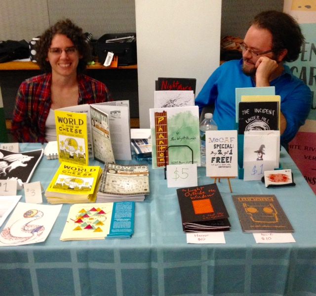 Catherine and Ben - displaying their own comics as well as Center for Cartoon Studies booklets...