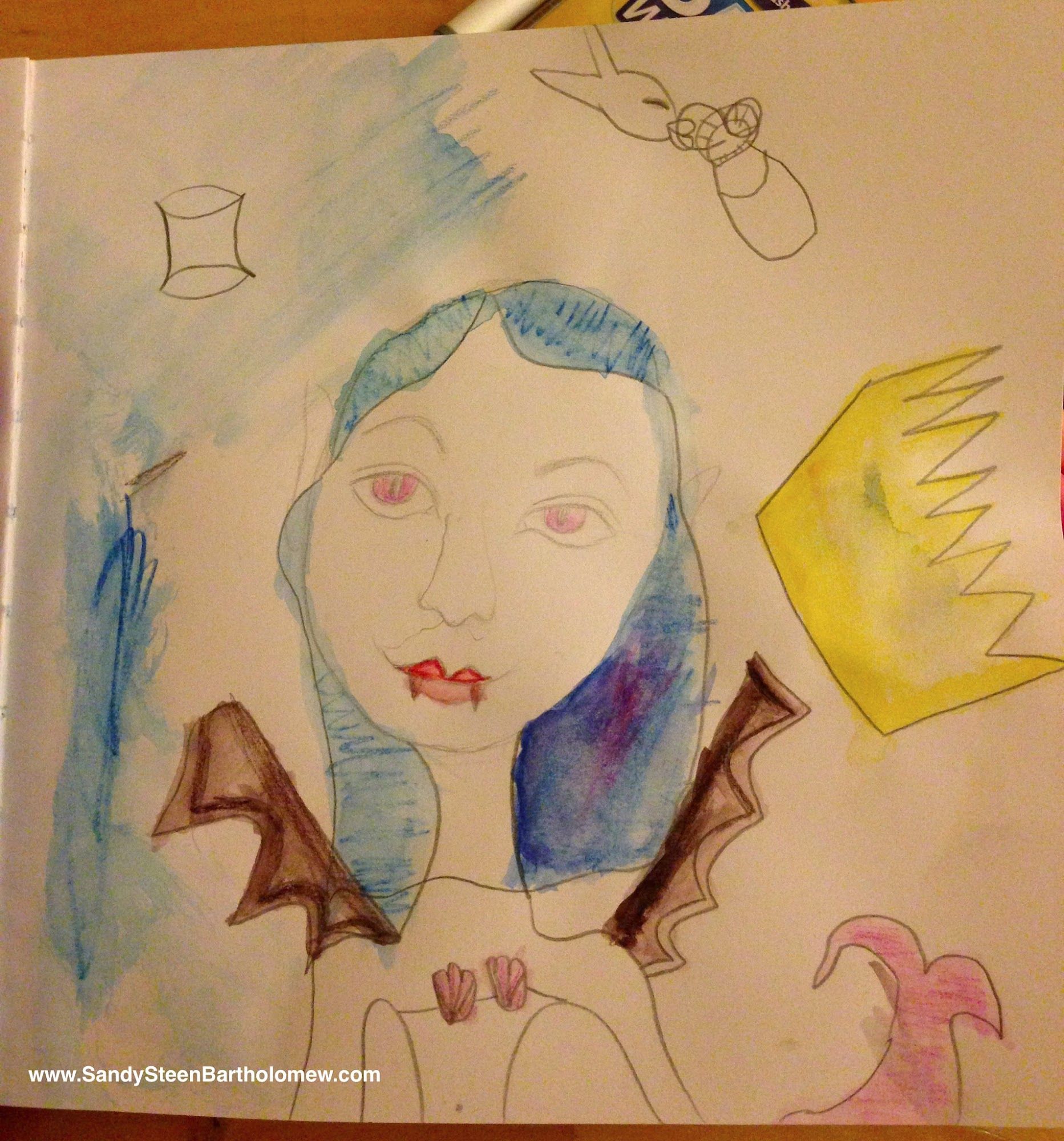 I drew this lady and colored her with Inktense pencils (have I mentioned how much I love 'em?)