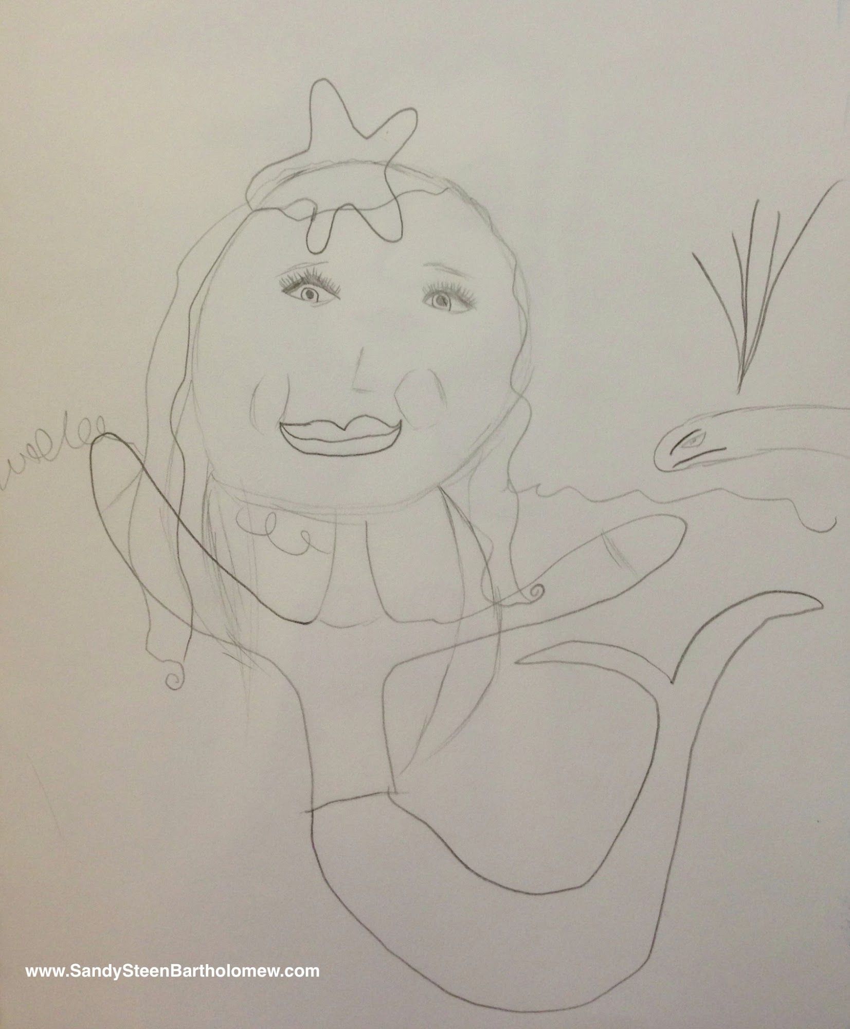 Then Lilah decided to improve on my mermaid and she drew this one in pencil (note the starfish in her hair too)...