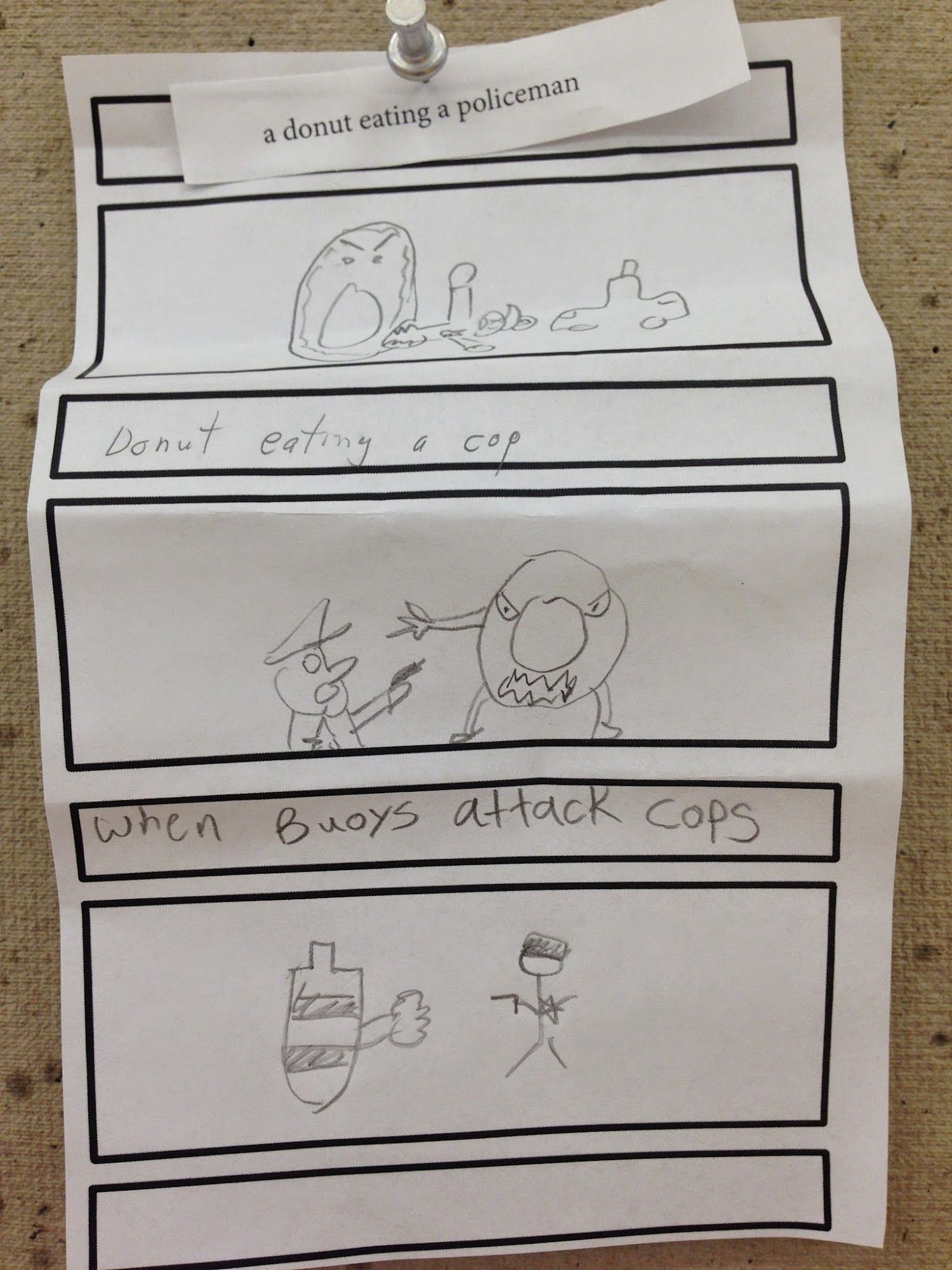 Ah, back to the Exercise.... The first person was given a phrase and they drew a picture of it in the first box, folded over the phrase, so it couldn't be seen, and passed it on. The second person looked at the picture and had to write a phrase describing it. Then they folded over the picture so the third person only saw the new phrase - and they had to draw a picture of it. Repeat.