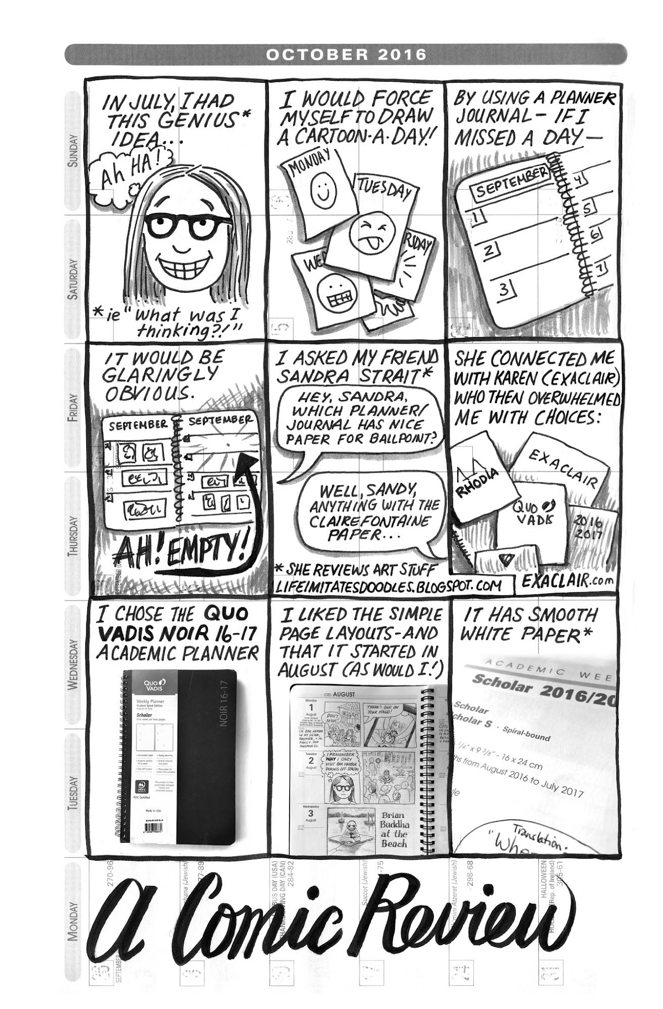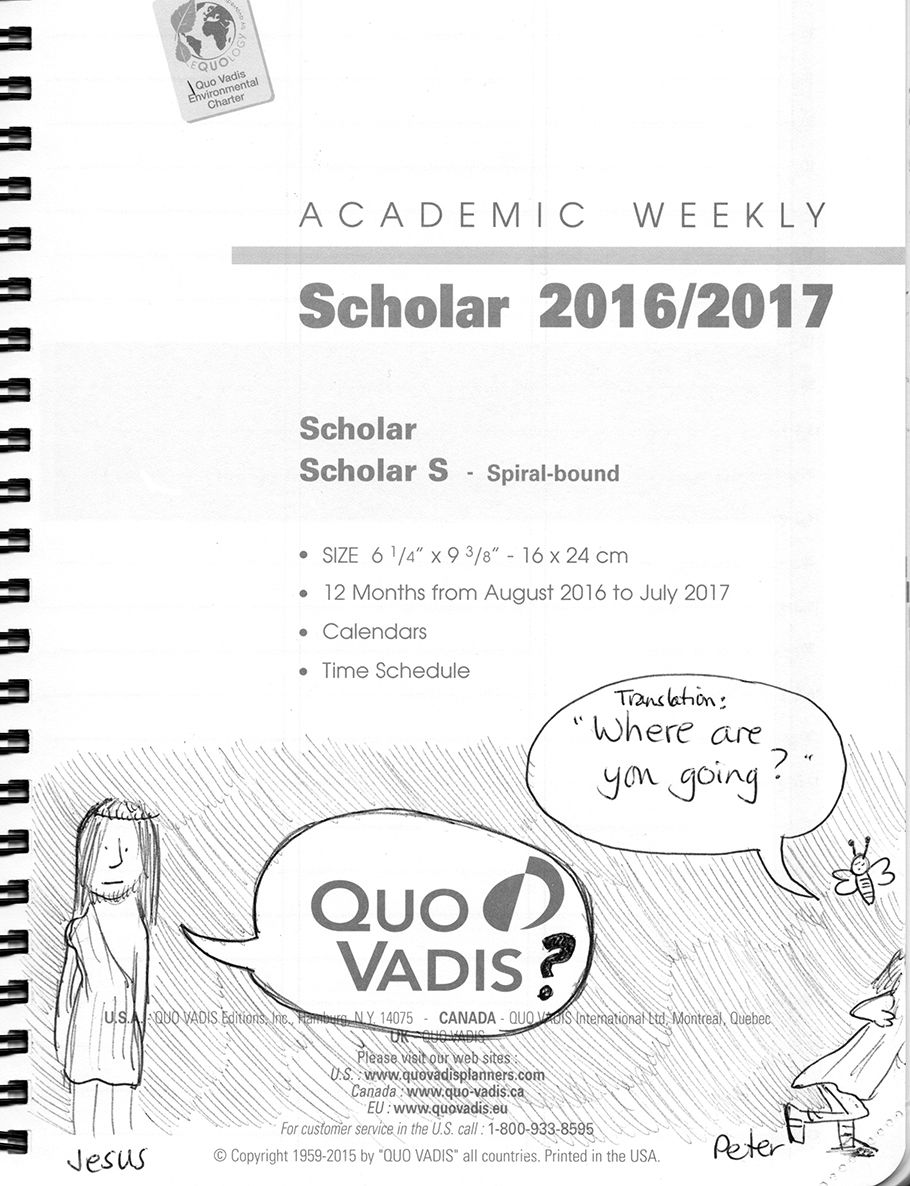 When I started the comics in this planner, my son (the language expert) told me that "QUO VADIS" means "Where are you going?" (Latin). It's what Jesus said to Peter as he took off... so I altered the title page...
