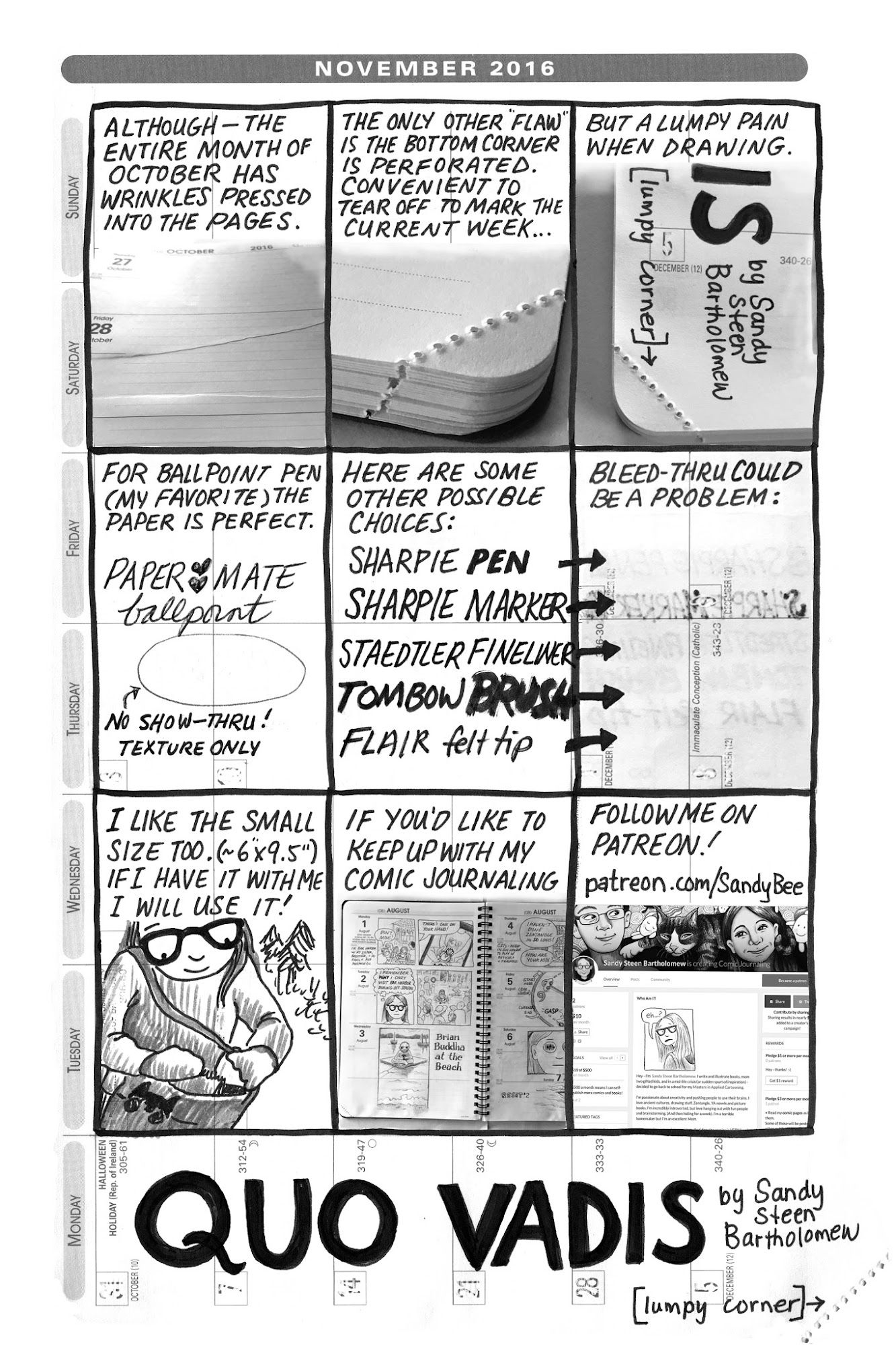 If you'd like to keep up with my comic journaling, follow me on PATREON (patreon.com/SandyBee)