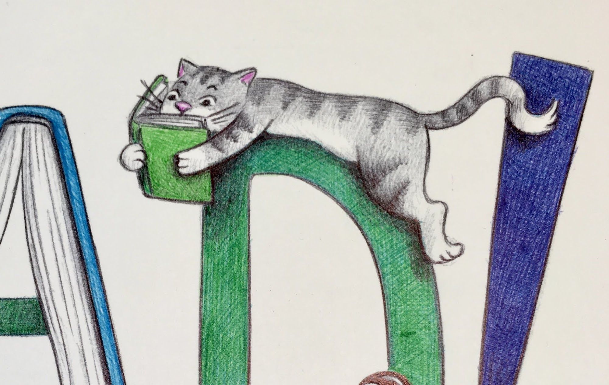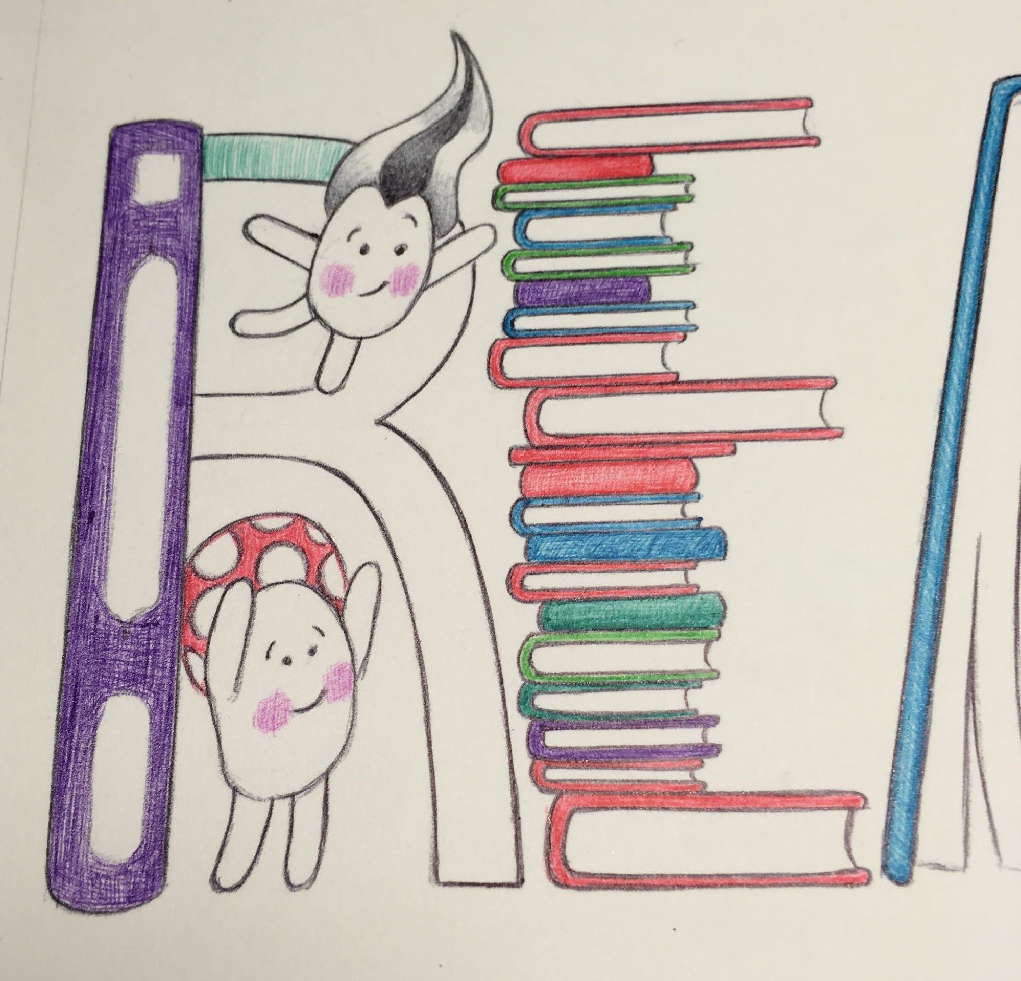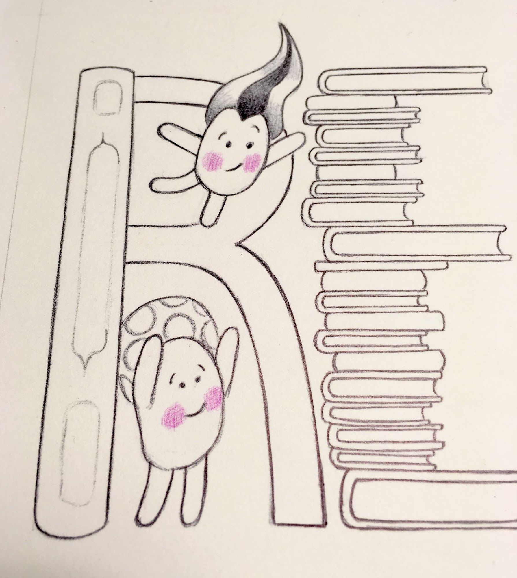 To clarify, here's another example: Let's say you are a librarian and want artwork to hang in your elementary school library... you could ask for the word "READ!" with some Lilah Beans. I would create the R-E-A-D letters made from books and stacks of books with Lilah Beans sitting on the stacks and reading other books. You could also tell me if there are particular titles you'd like on some of the books. Hmmm.... that sounds pretty cool - I may have to draw that one for myself!