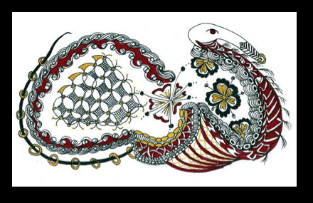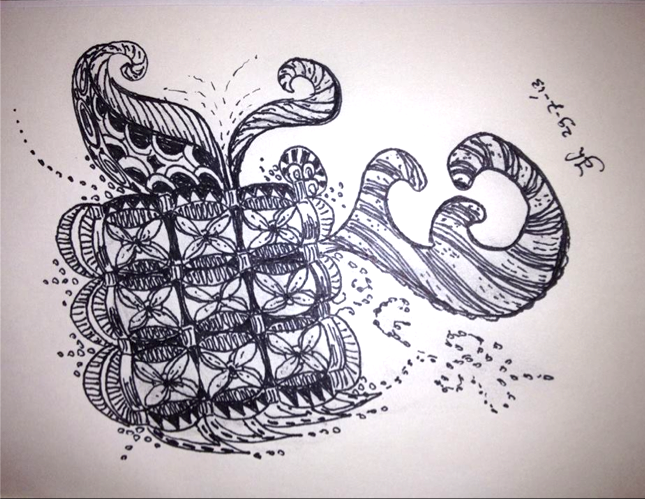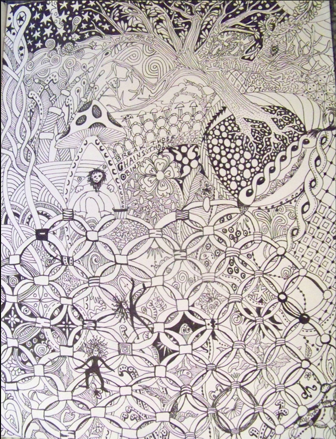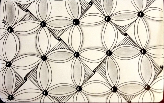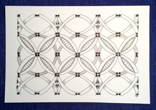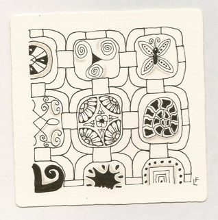 Although it was created using colored pens, this piece looks like a quilt - the inspiration for the tangle itself. And as if this piece is not mind-blowing enough on its own, Becki's entry for last week's challenge, Annee, had my jaw dropping to the floor too.