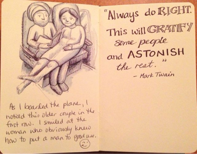 I finished a journal page I had quickly roughed in last night. The couple was a lot older in real life, but there was something so playful about them that I drew them much younger.