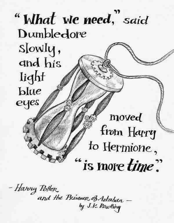 Sometimes the timing of the prompts seems kind of creepy ... I am struggling with a particular issue and - BAM - THAT is the very topic of the week's prompt. I have a lot of theories and questions about Time, but I was having trouble thinking of what to do for this journal page. Then one night, Lilah and I were reading Harry Potter. When Dumbledore says this line - I got so excited! Exactly what I needed! A time turner! So I snitched the book from Lilah's room and used the illustration of the time turner as my inspiration. I drew it a bit more steam-punked and then drew in the text. Everything is drawn with a Papermate ballpoint pen.