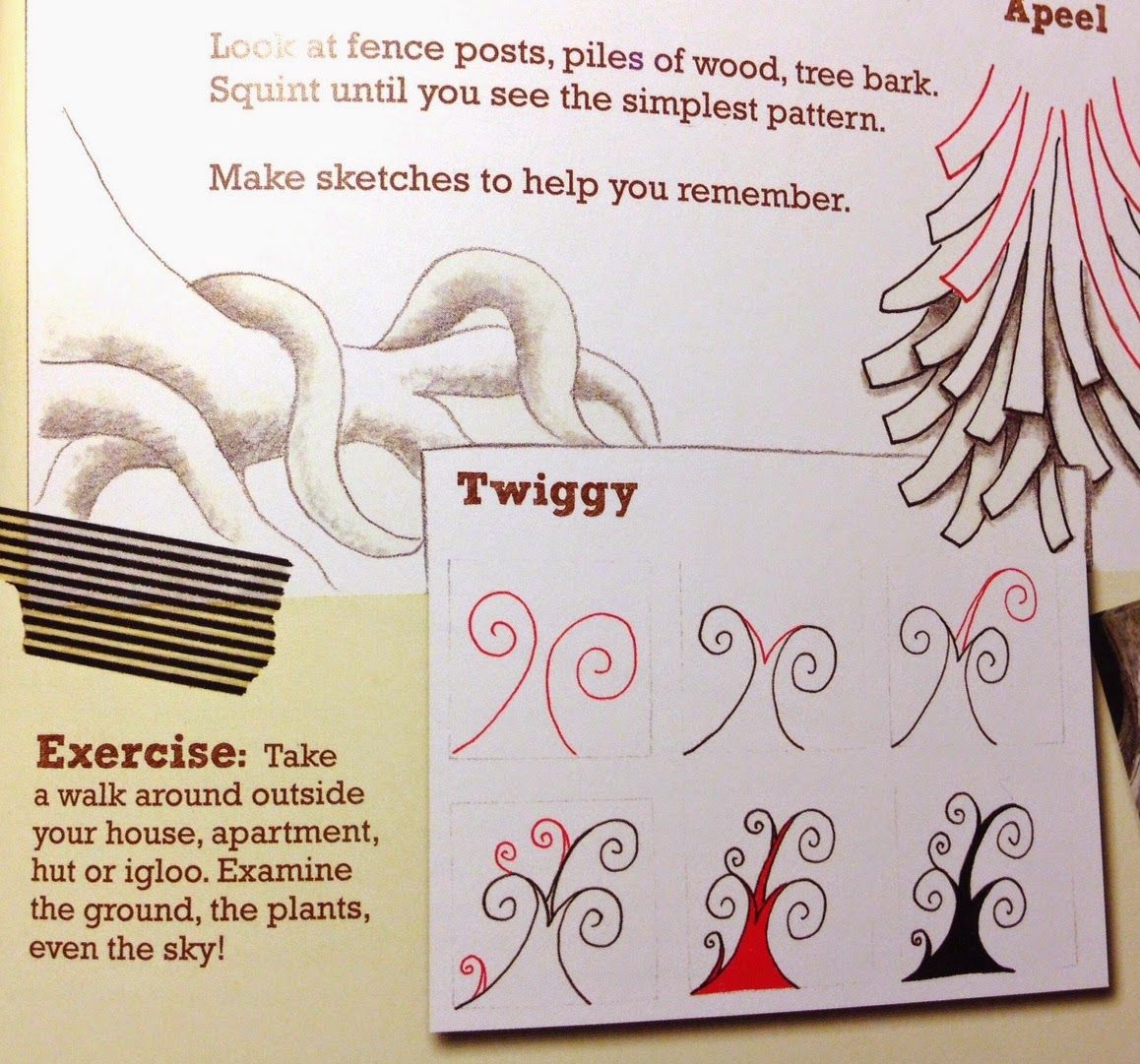 . The original page is showing how to use the trees, fence posts, etc that you see around you, as tangle inspiration. Context makes a difference.