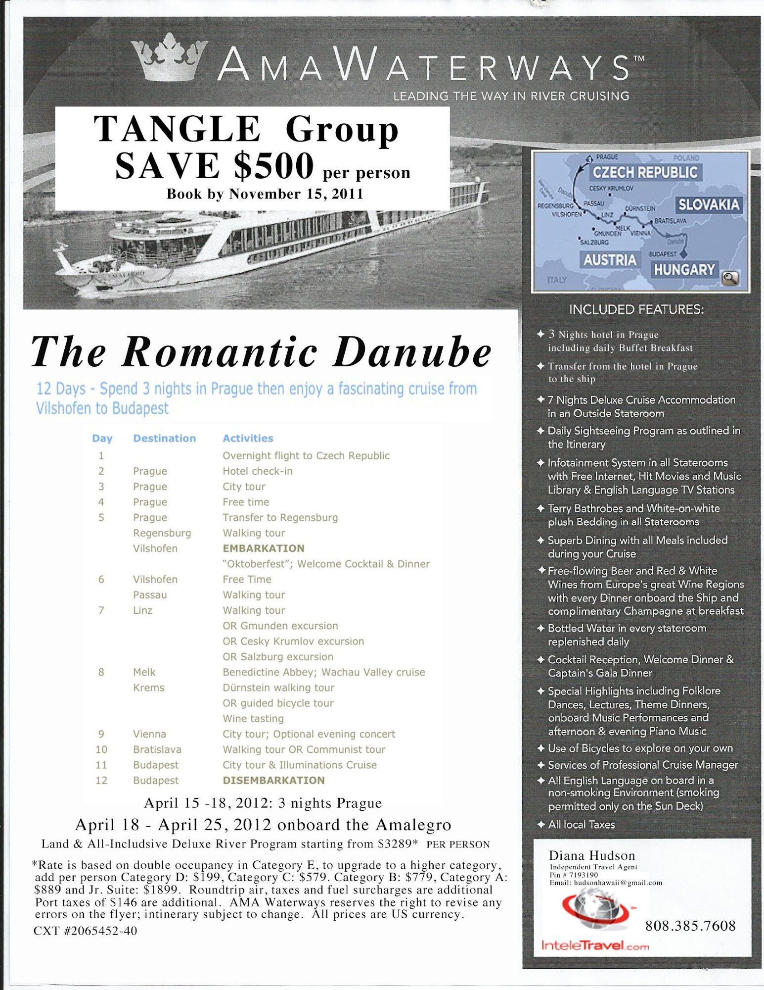 I spoke with you at the last CZT conference about putting together a ... TANGLE group cruise, ... time is running out on the special $500 discount, which ends November 15, after that it would only be a 5% discount. Also the cabin upgrades at this time are 50% off. The cruise time is actually April 18-25th with an option of a 3 day pre-cruise stay in Prague.