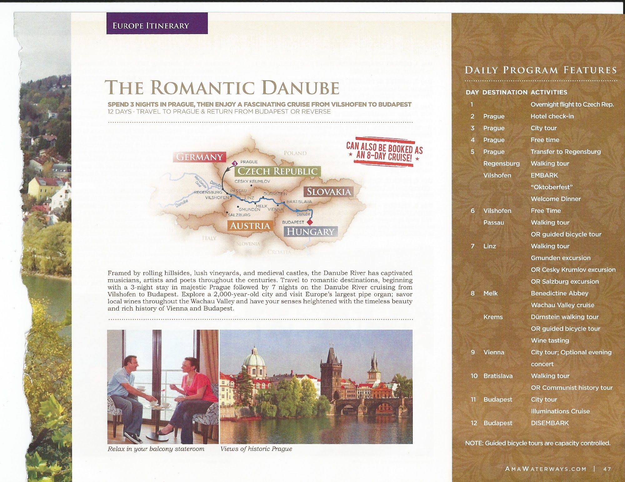 This is the website for AMA Waterways. I actually have done this cruise and it is wonderful. www.AMAWATERWAYS.Com ...The beds can be configured with one bed or two. OHH, writing this is bringing back the feeling of getting in to the wonderful plush bedding. It was delightful. I actually booked a single for myself when I went and it was really nice, but would have been just as comfortable with sharing if I had someone that I really liked. :) I was in a Category C Cabin and it was perfect so I would personally recommend that category or A &B. Those cabins have the sliding patio like door that you can leave open and get that wonderful fresh air.
