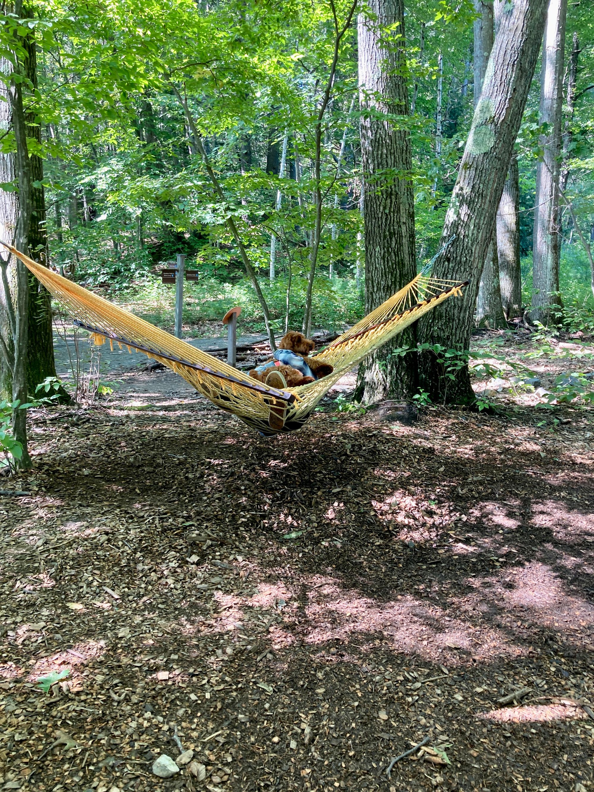 Unfortunately some kids found our secret place and one little girl started in on Elsa Bear. I asked her not to try and pet her and explained that she's training as a service dog. Her mom ignored me and her kid so we detached ourselves and disappeared deeper into the woods.