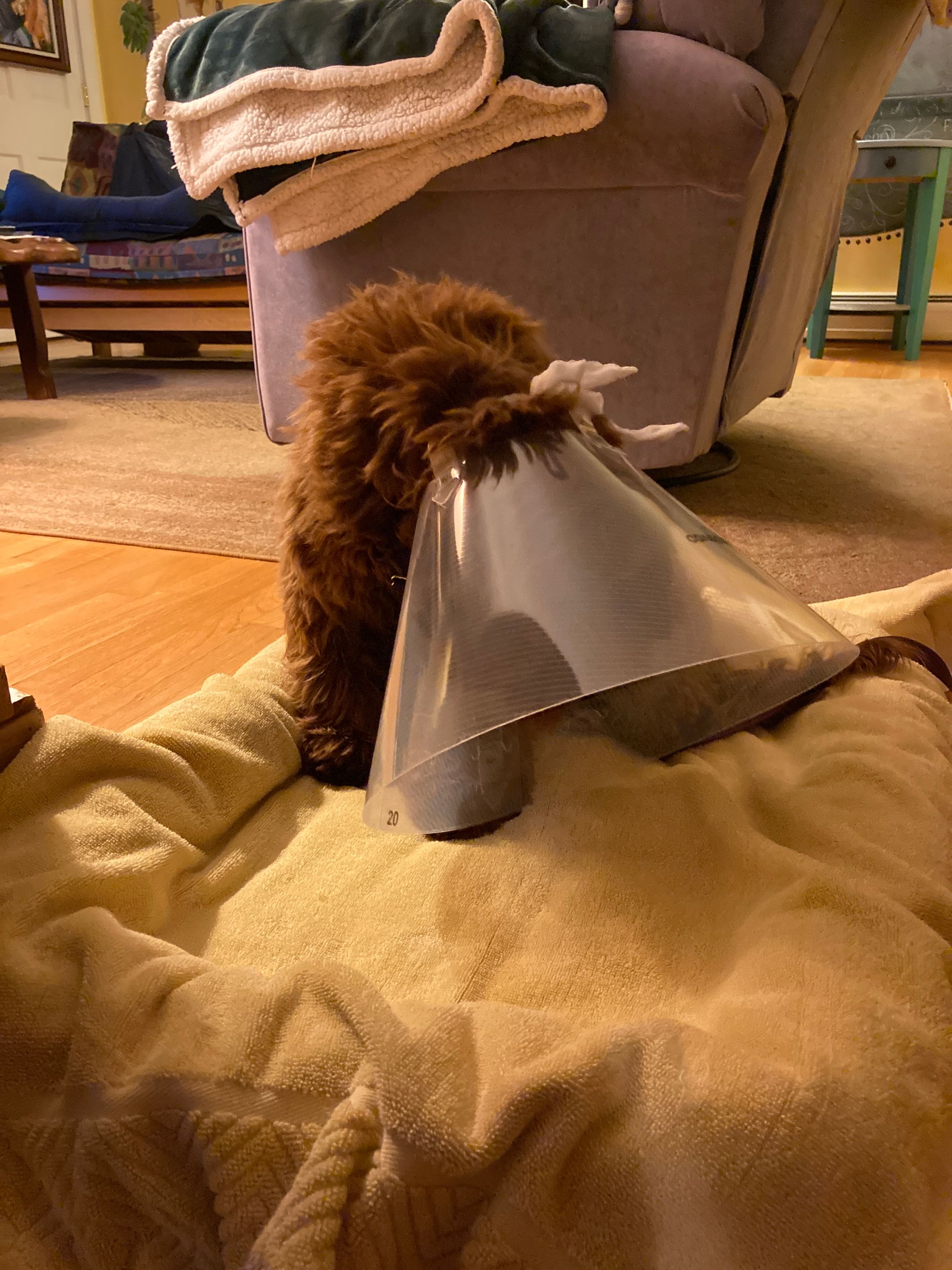 She keeps walking in to things and getting the cone caught on stuff. But we finally figured out a few things: