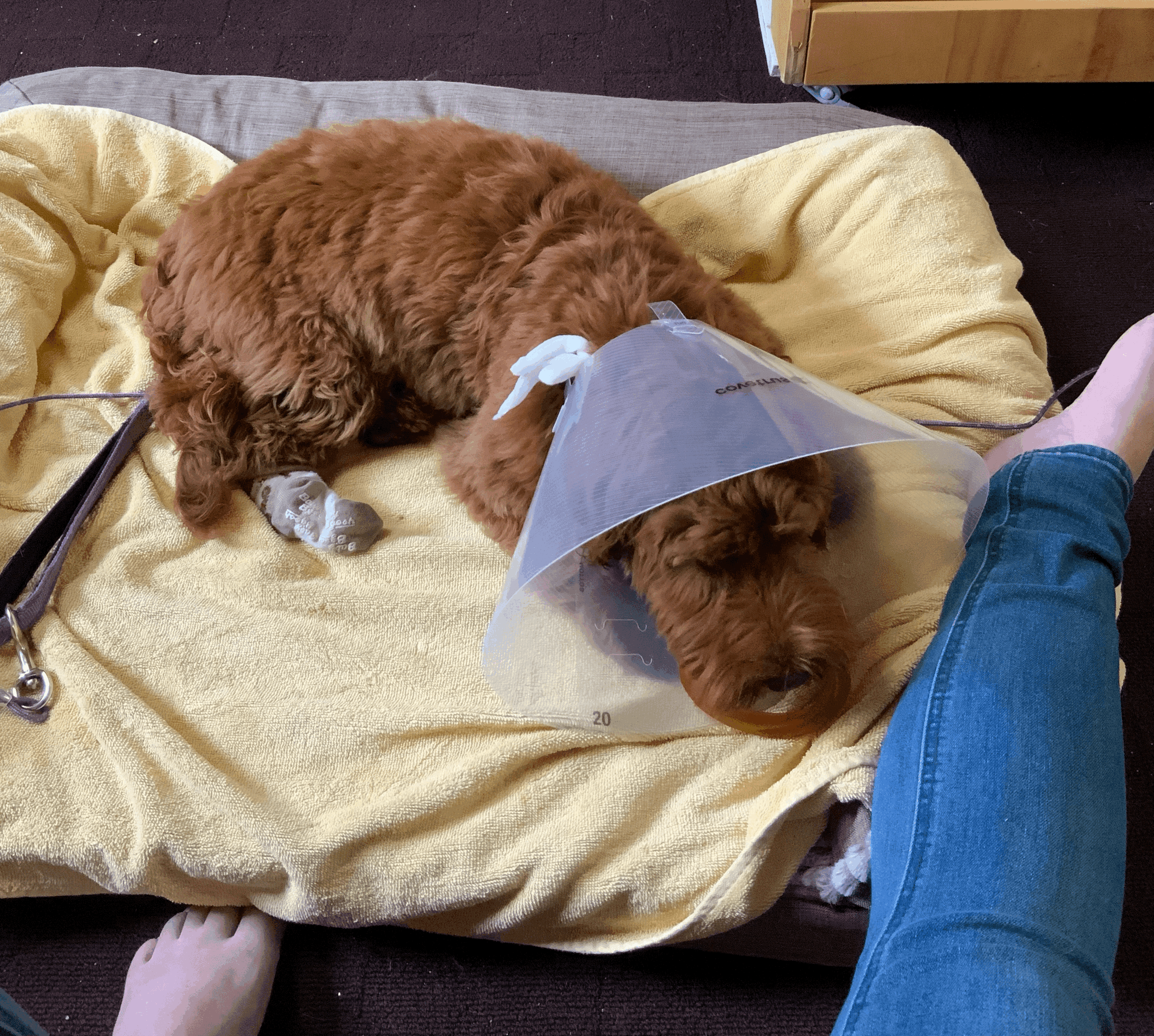 • If the Vet says "The stitches are water soluble. You absolutely must NOT let her get wet!" - that means 1. your puppy is actually a Gremlin (also, don't feed her after midnight) and 2. it will be POURING rain when she needs to go out to pee.