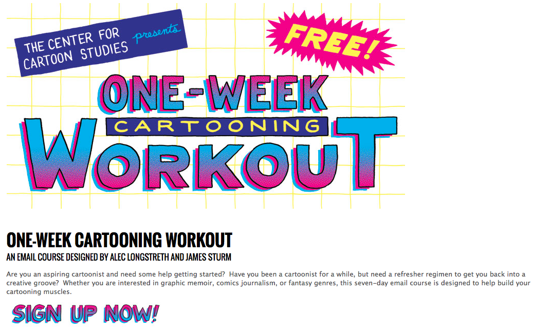 My school, The Center for Cartoon Studies, is offering a FREE Cartooning Workout - by email! So you can try cartooning without having to travel to Vermont.