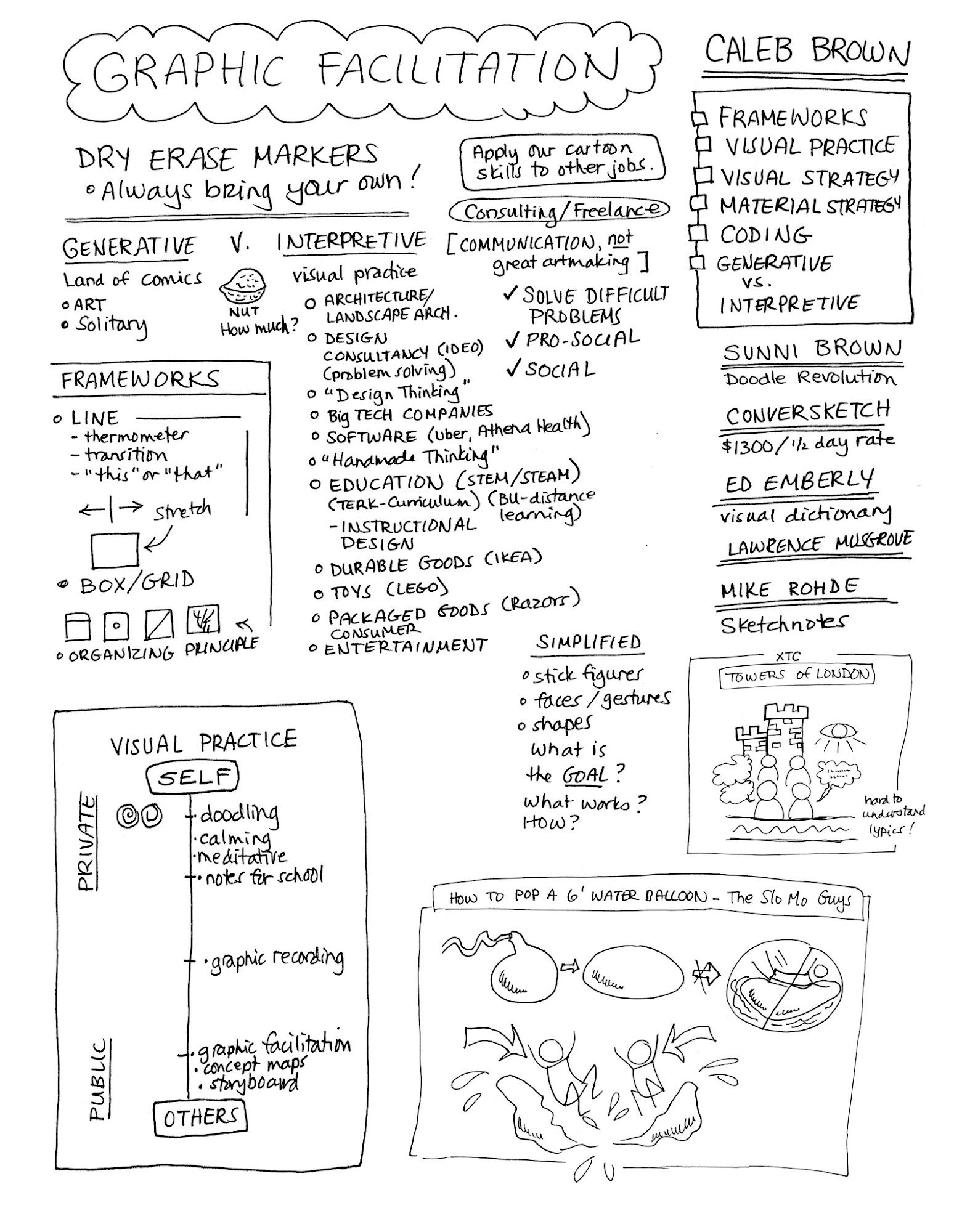 Earlier on Thursday, we had a workshop with Caleb Brown to learn more about Graphic Facilitation. This is a field that I would love to do work in - it makes use of my passion for Sketch-notes. Here are my (much better) notes on that lecture: